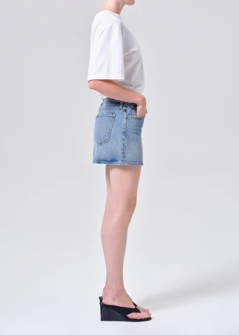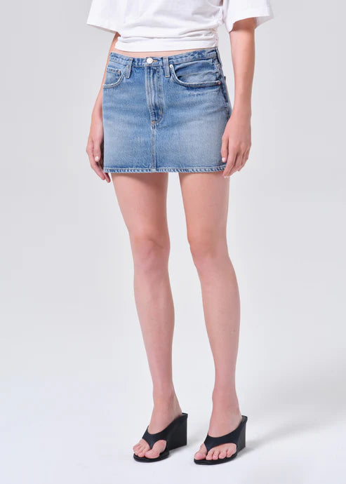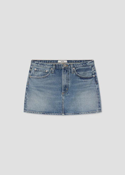 The Keira Mini Skirt redefines a denim classic with a sleek, modern fit. Designed in a medium vintage indigo wash, it features a skinny waistband, classic five-pocket styling, and a mini length that feels effortless and contemporary. Crafted from non-stretch regenerative cotton denim with a soft hand feel, it offers all day comfort while maintaining its clean, structured shape.