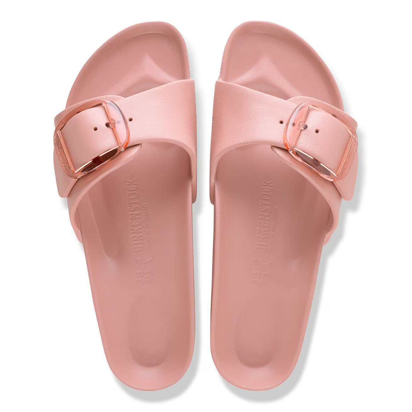 This is a new and modern interpretation of the BIRKENSTOCK classic Madrid. This version features our popular Big Buckle made from a stainless synthetic material and makes an impression with its durability and minimalist design. Modeled on the cork sandal, it is made from the ultra-lightweight and highly flexible synthetic material EVA. The high-quality, odor-neutral EVA has been tested for harmful substances and combines numerous positive attributes: it is very light, highly elastic, shock-absorbent, water-resistant, and skin-friendly.