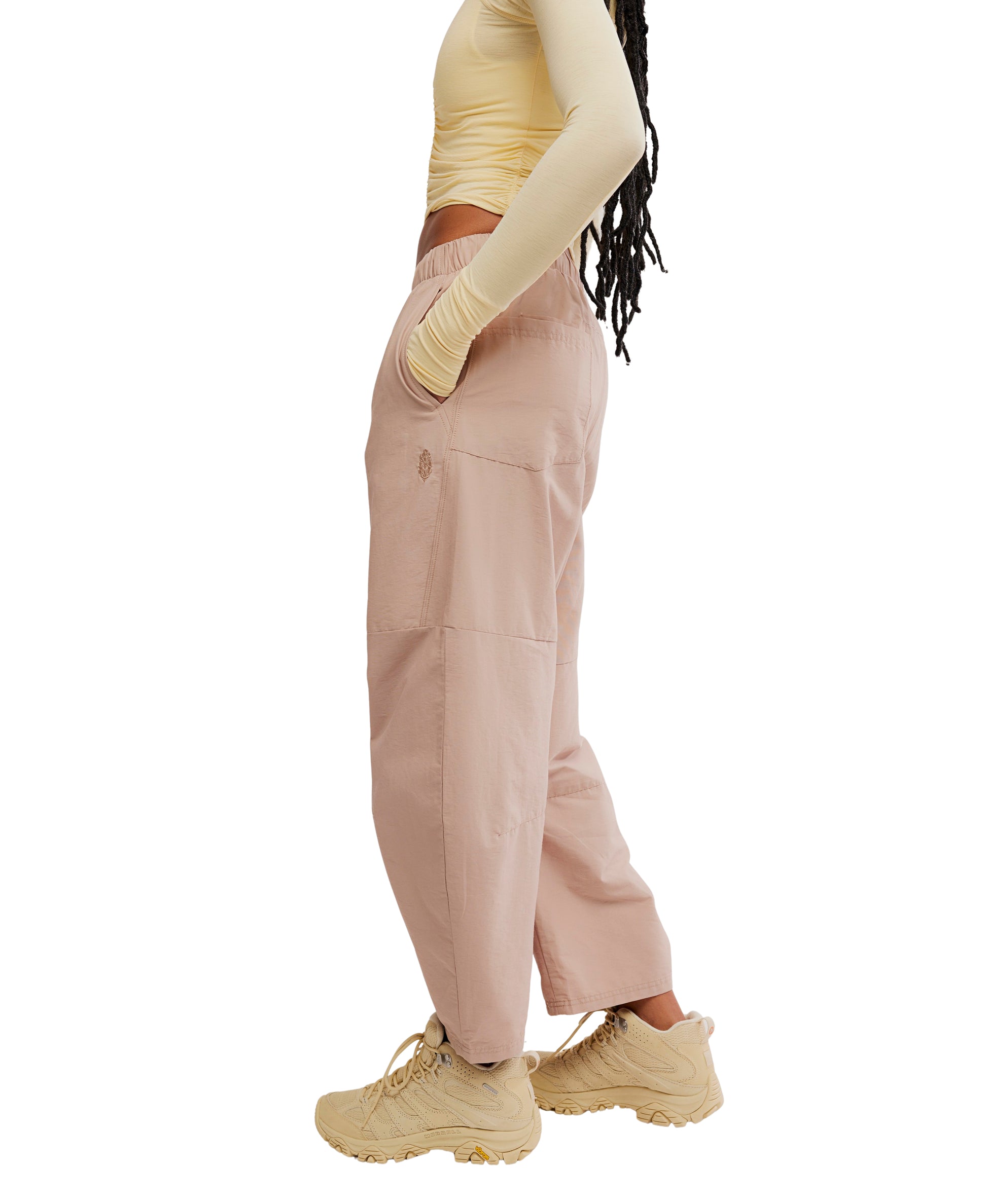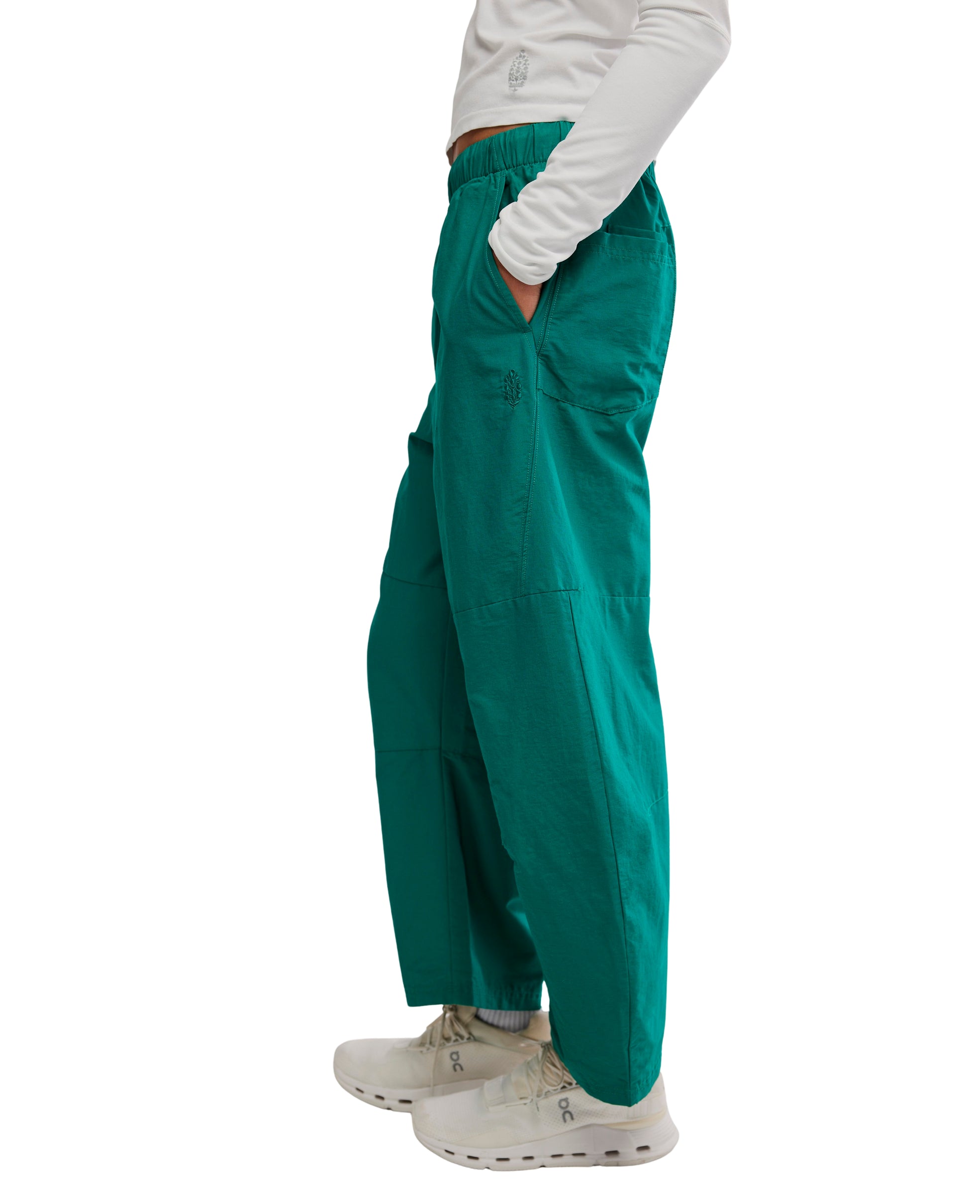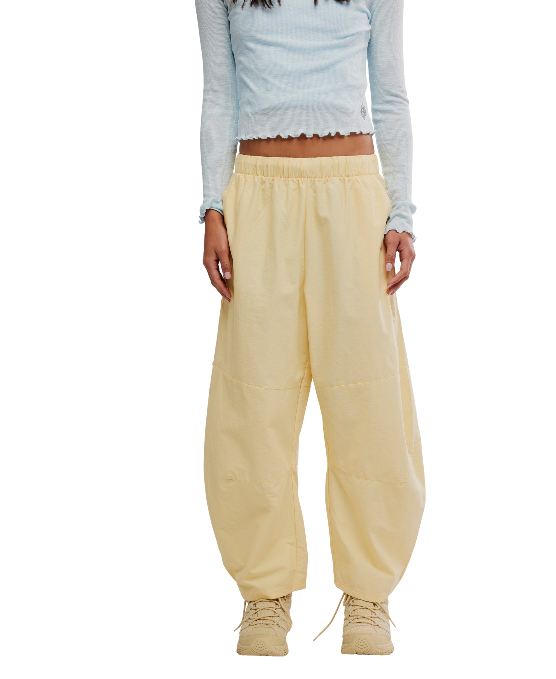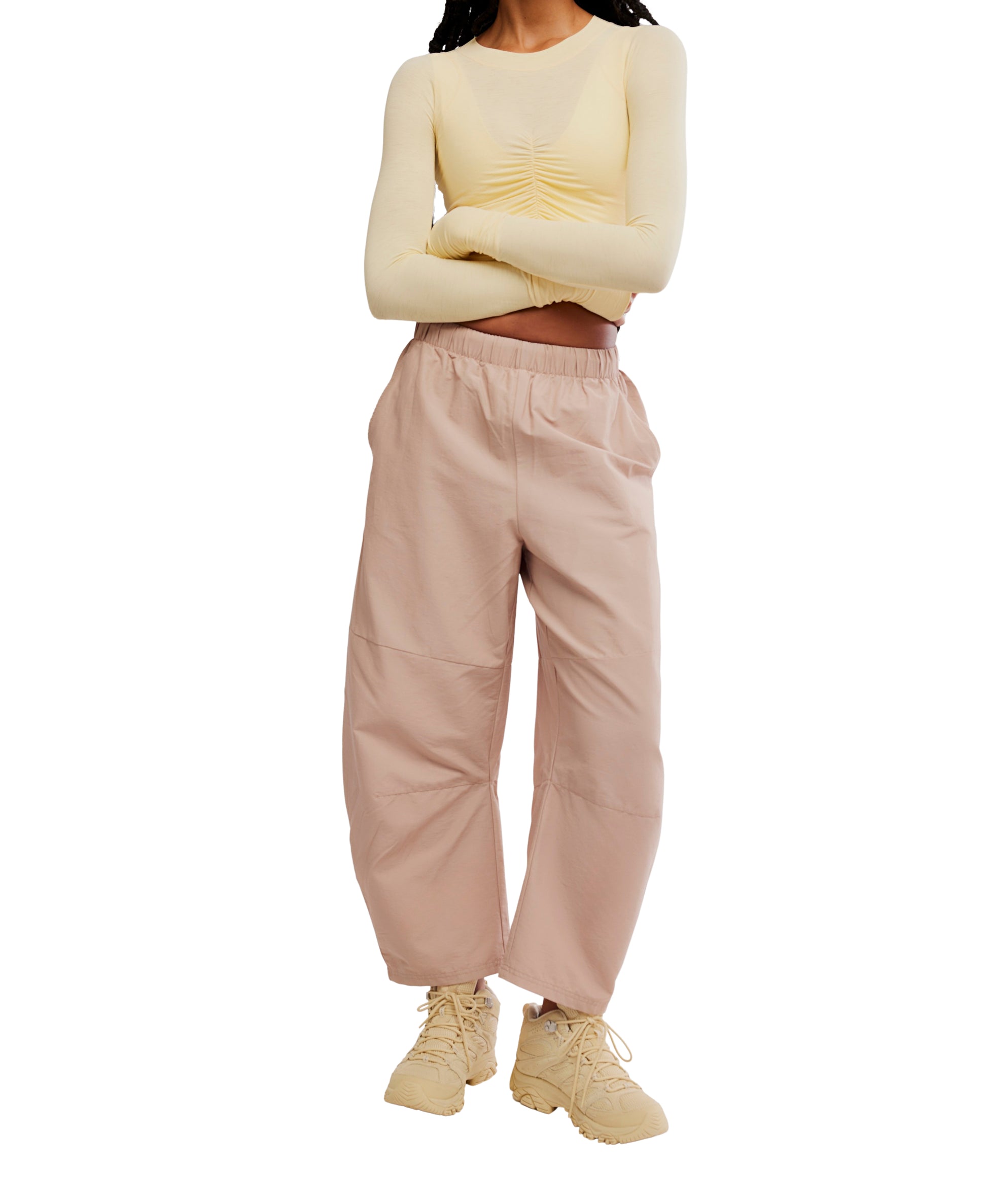 Ready for anything in a relaxed yet sporty silhouette, these effortless pants are featured in a high-rise, tapered style with defined seaming and slightly barreled legs for the coolest shape.