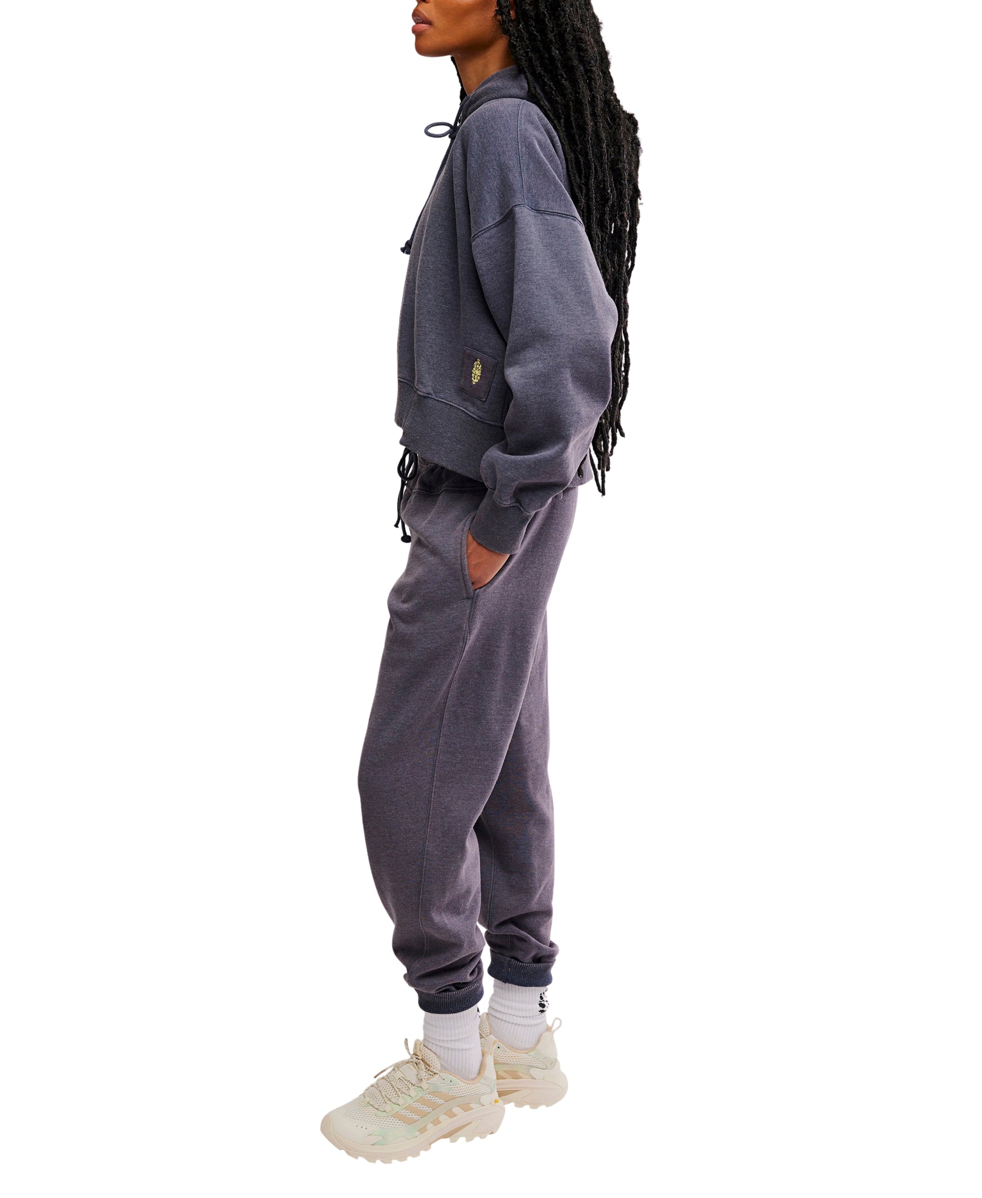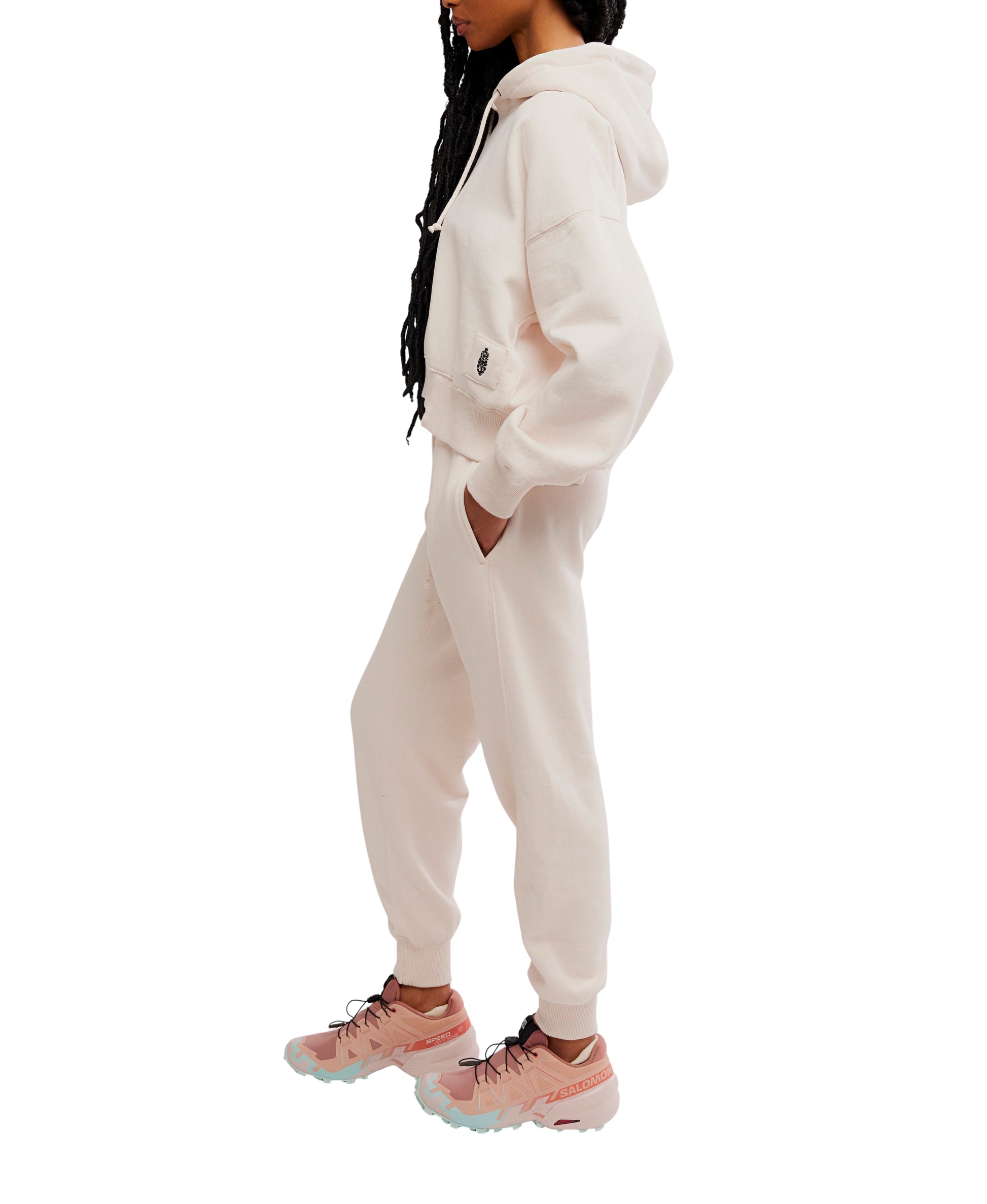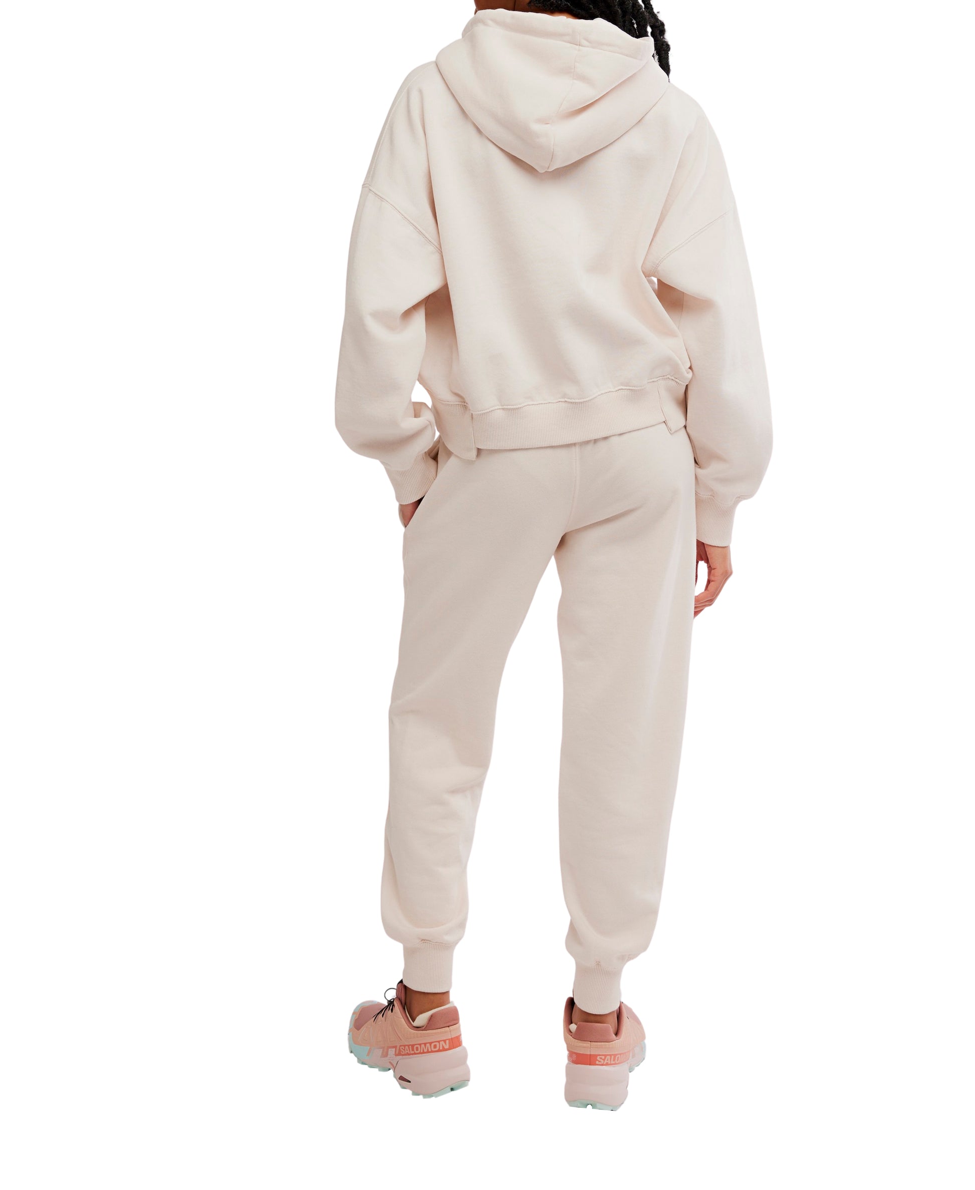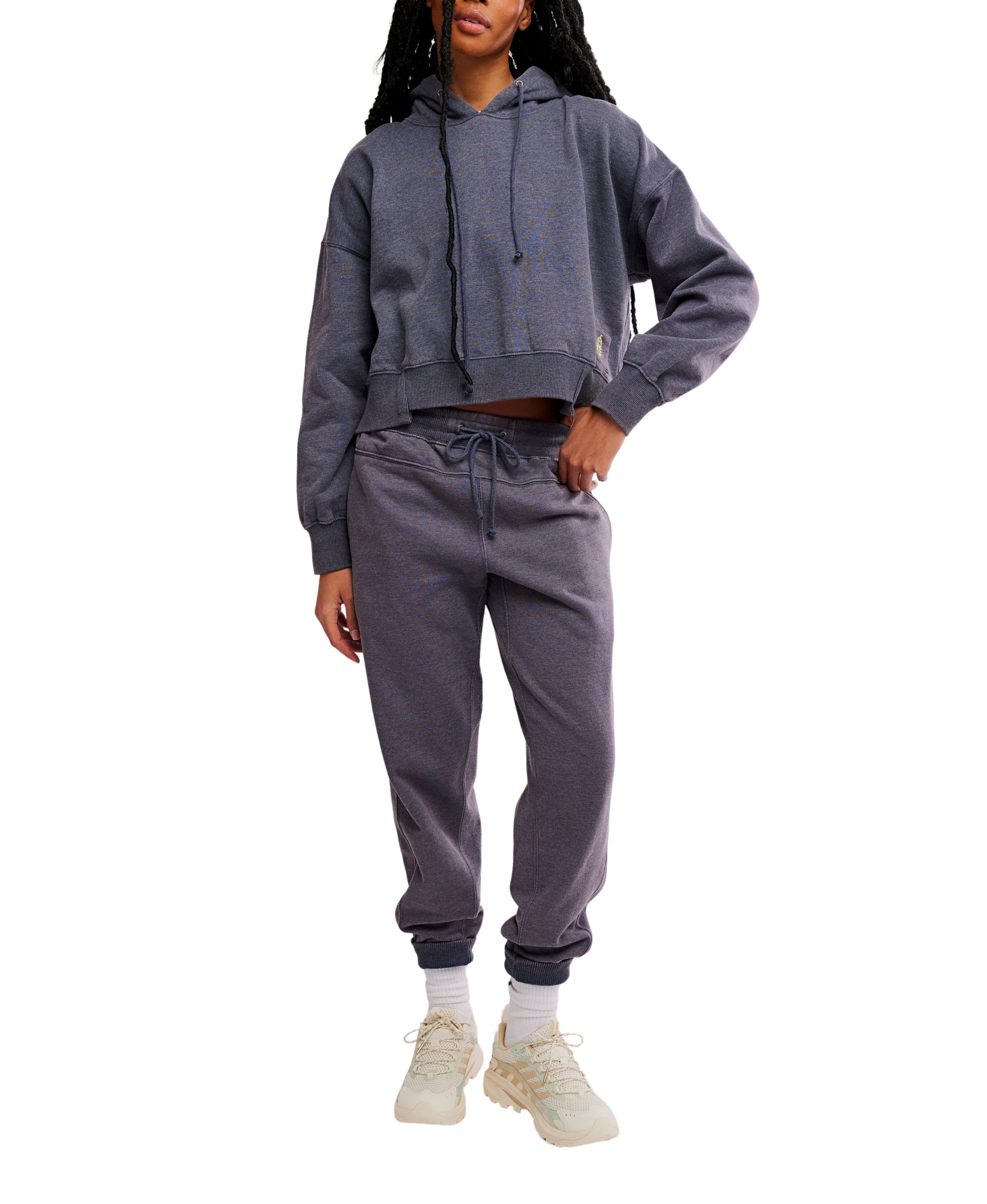 Level up your cool and casual wardrobe rotation with this effortlessly essential set featuring a slightly cropped, relaxed-fit hoodie top with coordinating high-rise tapered sweatpants for the perfect done-in-one look no matter the activity.