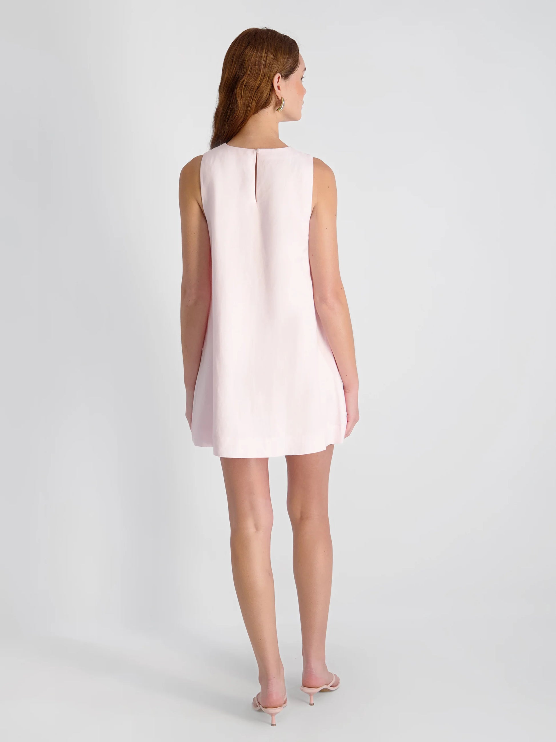 Meet your pack-and-go mini. The Cooper Linen Sleeveless Mini Dress is light, breezy, and effortlessly chic. Sleeveless with a clean round neckline and soft mini flare, it’s perfect for warm days, sunset dinners, or wandering through the city streets in style.