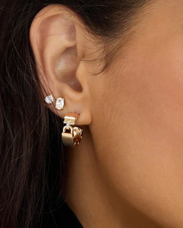 Lock in. Lock-inspired detailing sharpens a sleek huggie silhouette made to live in your everyday rotation.