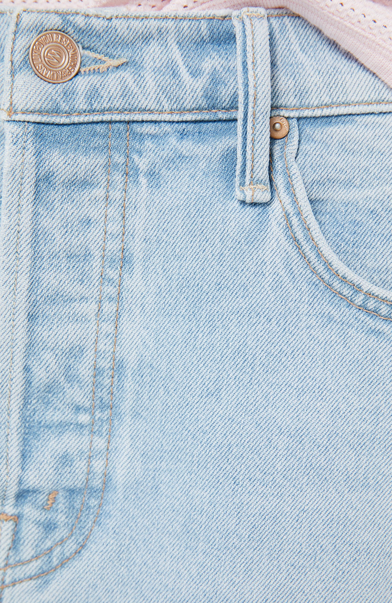 Chill out. A low-slung denim mini skirt with a button fly and a raw, frayed hem. Made from denim with a touch of stretch, Bring The Cooler is a light blue with subtle fading throughout.