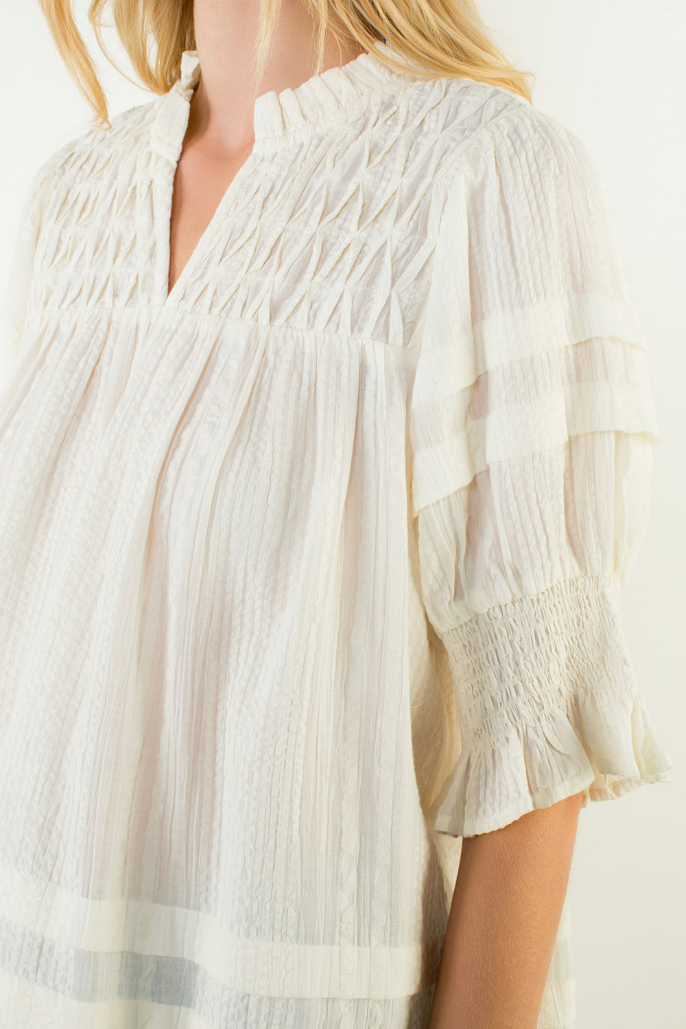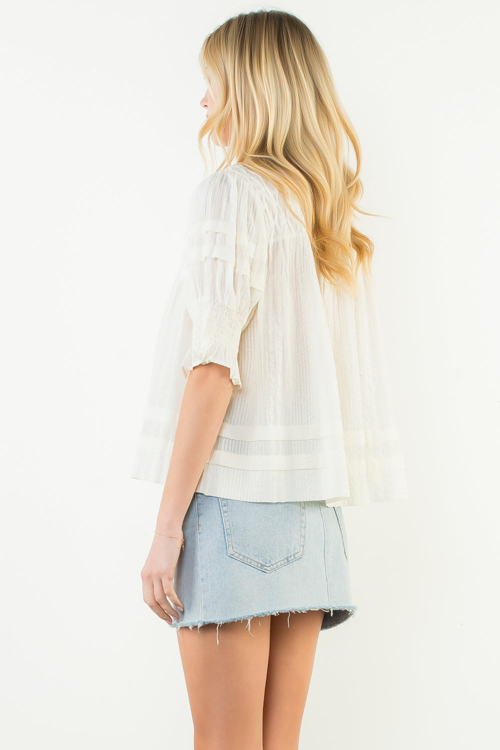 Elevate your everyday wardrobe with this THML Detailed Blouse, featuring a flattering V-neckline and thoughtfully designed sleeve details that add dimension and visual interest. A versatile piece that brings understated sophistication to any outfit.